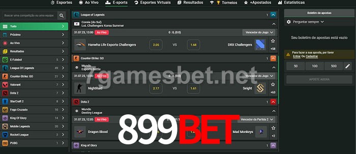 O 899BET oferece uma grande seleção de opções de apostas em e-sports com probabilidades competitivas